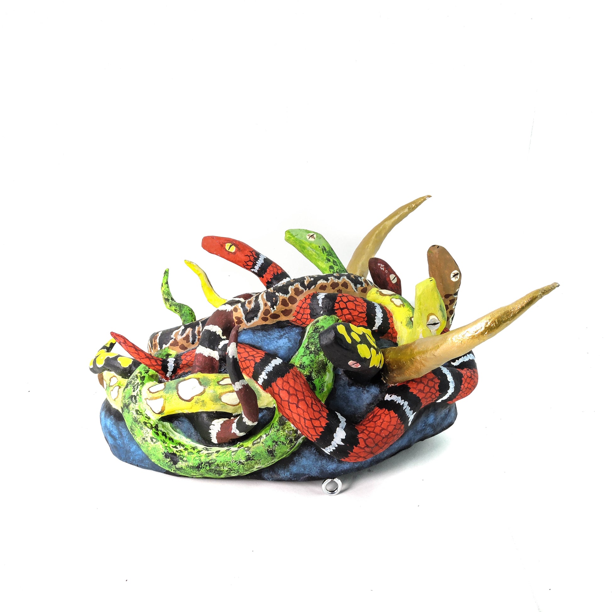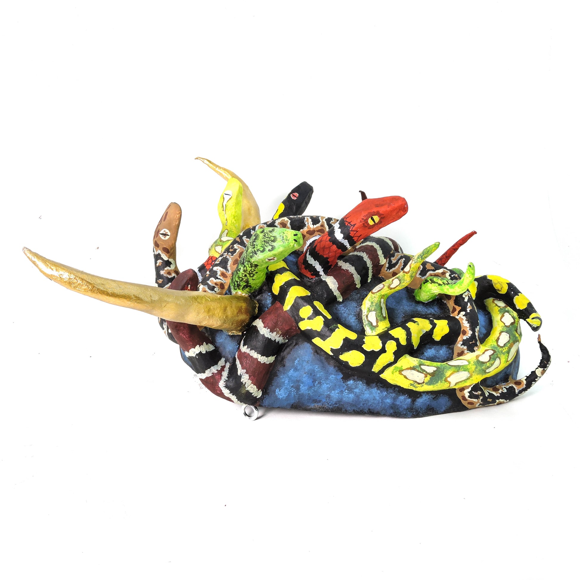 Nueva colección de Mascaras elaboradas a mano en el taller Nahualcalli utilizando únicamente cartonería y sin moldes. Cada pieza es pintada individualmente, contagiando la pasión e imaginación del colectivo del taller.