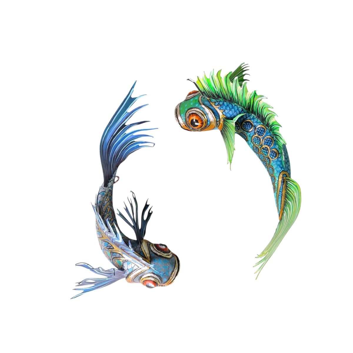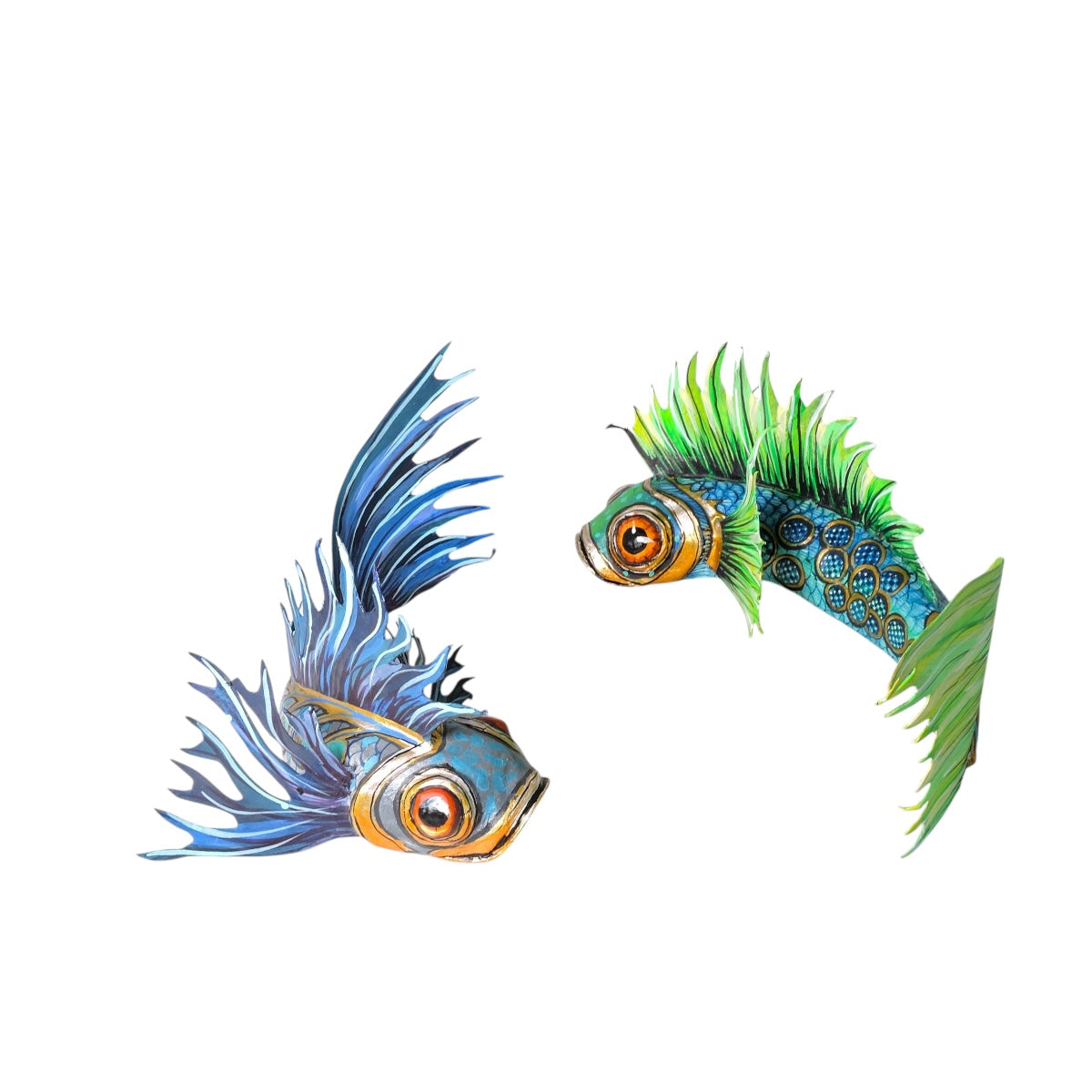 En el taller Nahualcalli presentamos esta serie de piezas inspiradas en los signos del zodiaco. Cada una está elaborada y pintada a mano utilizando la técnica de la cartonería, y decorada con motivos que evocan la magia y el colorido de los alebrijes oaxaqueños.