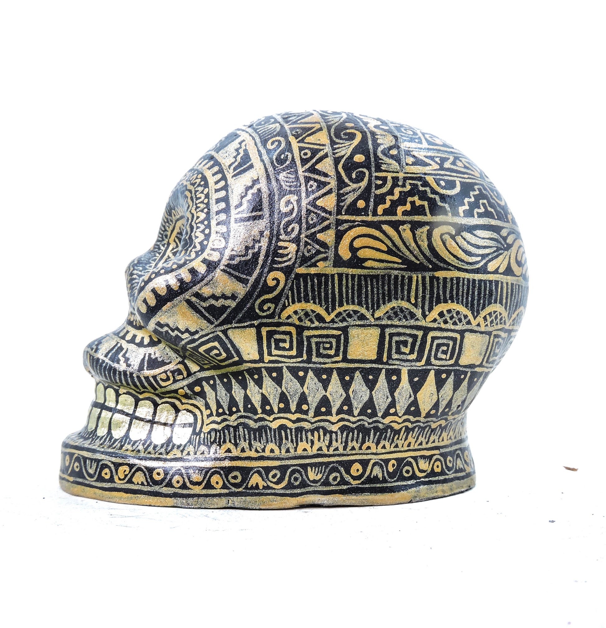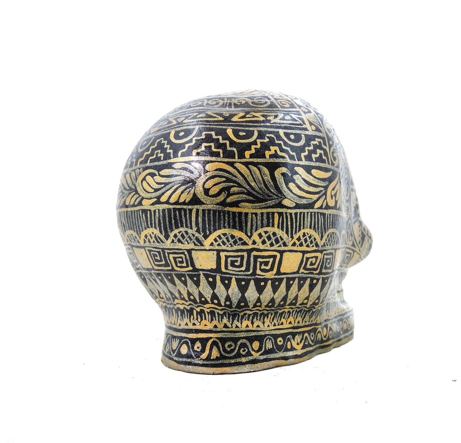 Hermosa pieza de artesania, elaborada en barro de alta temperatura en el estado de Toluca, en Metepec, es una pieza con una clasica y elegante decoracion de cenefas inspirados en la cultura popular y la riqueza artesanal mexicana.
