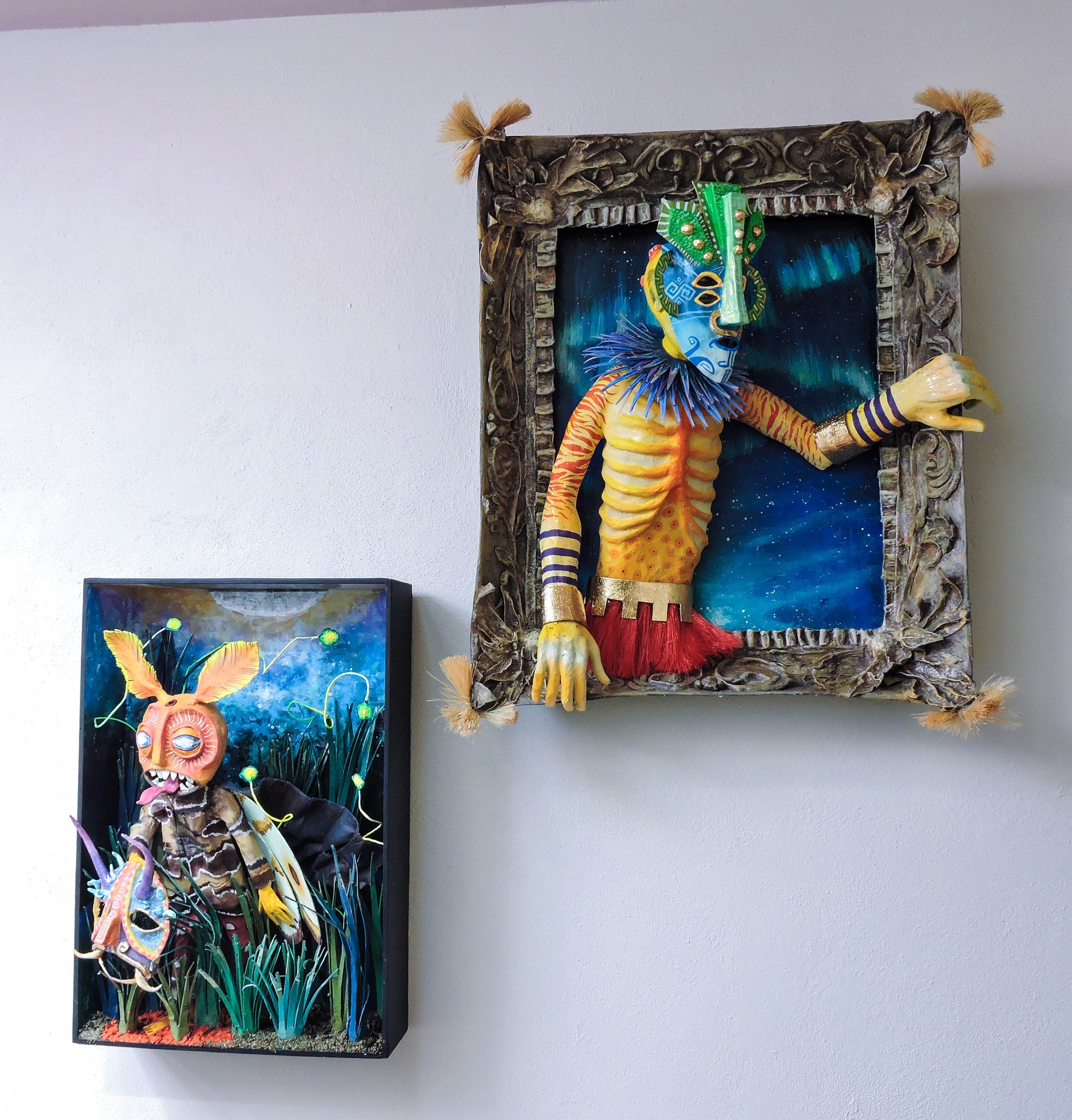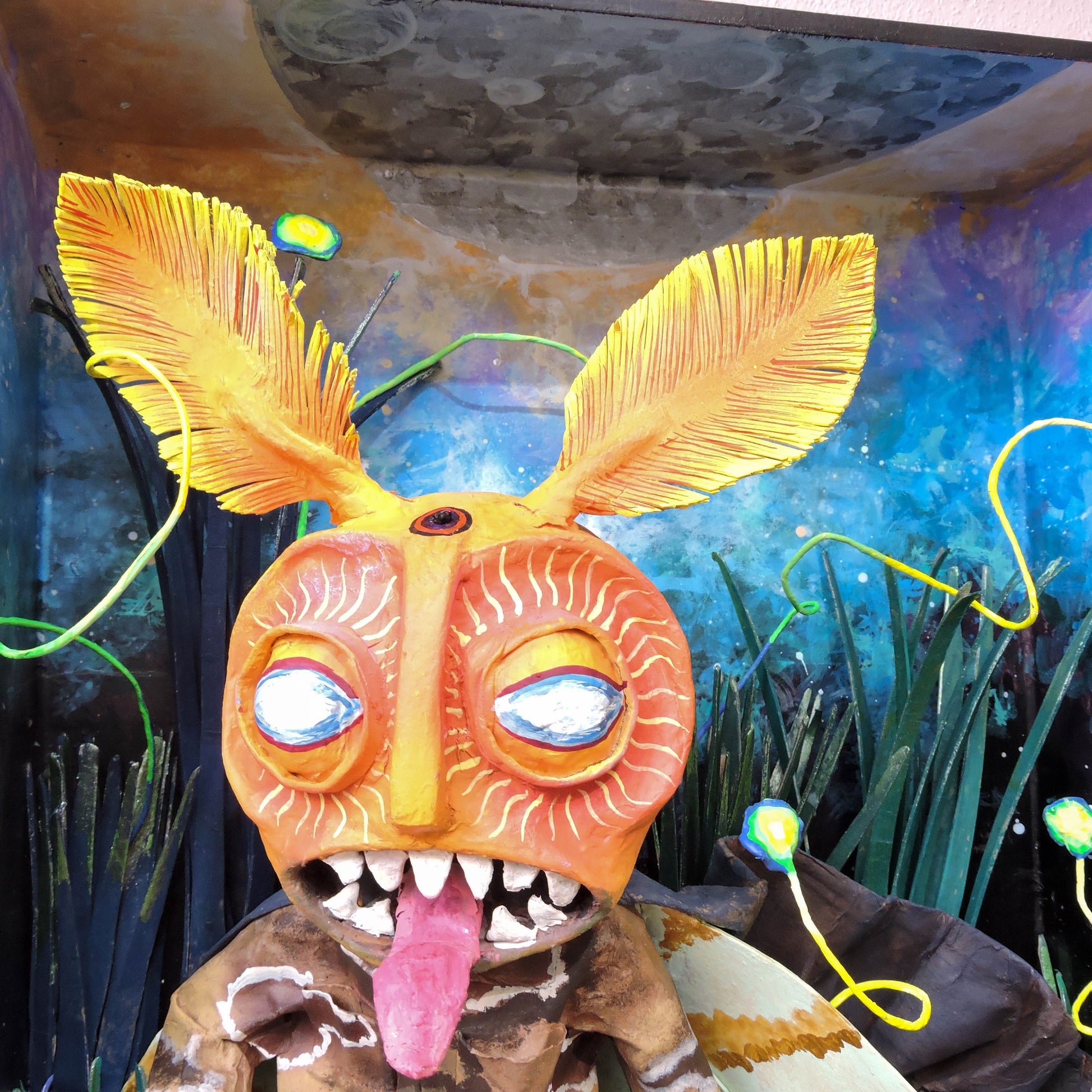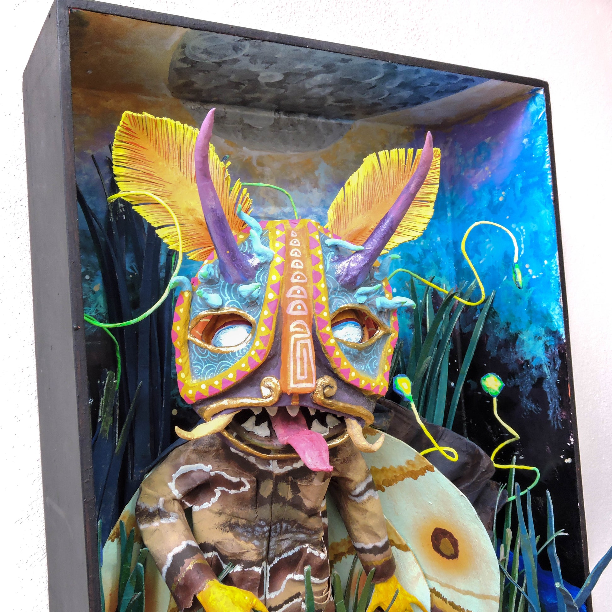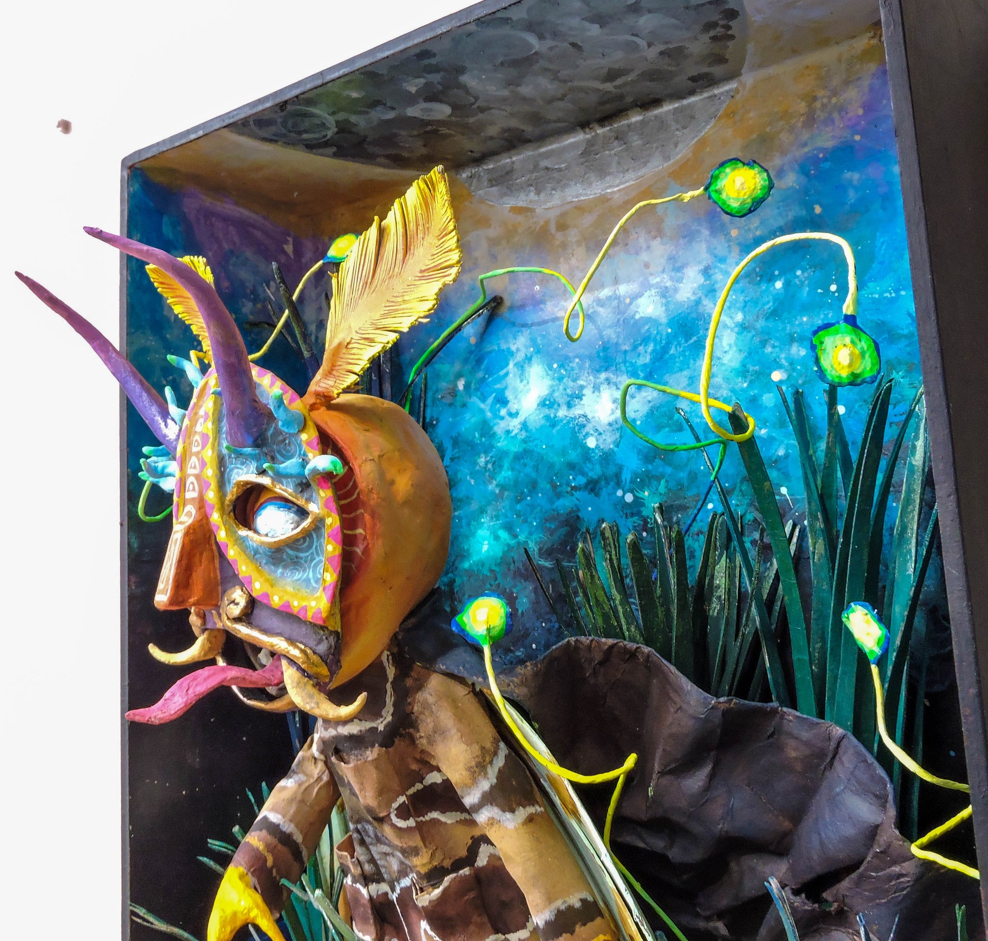 esta pieza esta inspirada en esta cita del libro "relatos de poder, Carlos Castañeda" es una escena donde menciona que el cnocimiento es una polilla por que nosotros somos una liz que resplandece, lo que compone nuestro ser es un objeto luminoso, esta escultura representa el momento justo en que Carlos se encuentra con este conocimiento, es una pieza unica, que forma parte de la Oniromaqvina y de el mundo de sus personajes