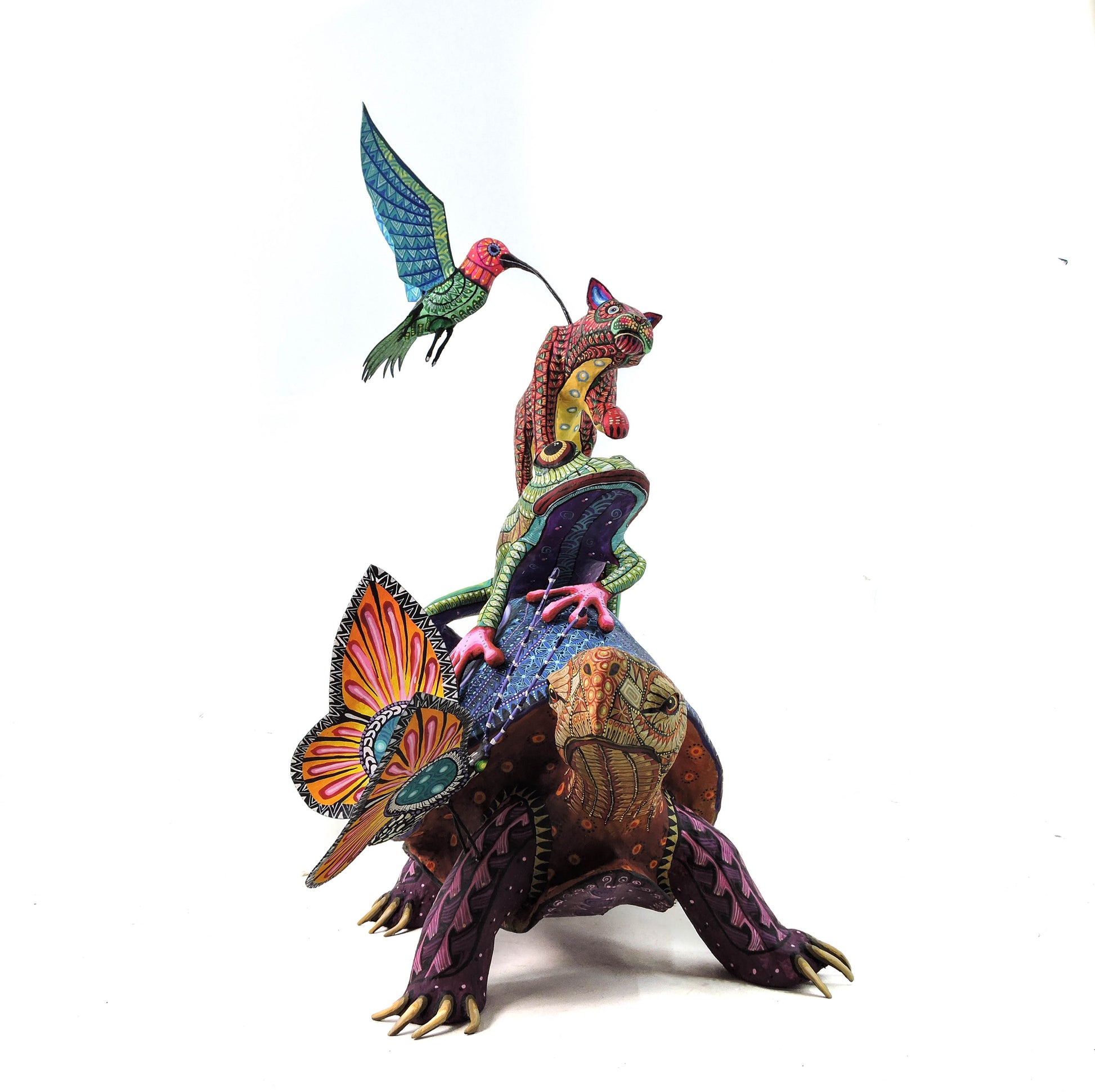 Cada uno de los animales representados en "Los Familiares" tiene un papel fundamental en la evolución espiritual del ser humano. Desde el poder y la valentía del jaguar hasta la paciencia y resiliencia de la tortuga, pasando por la adaptabilidad del armadillo, la fertilidad del conejo y la astucia del cacomixtle, esta escultura ofrece una visión holística de los aspectos espirituales que guían nuestro camino.