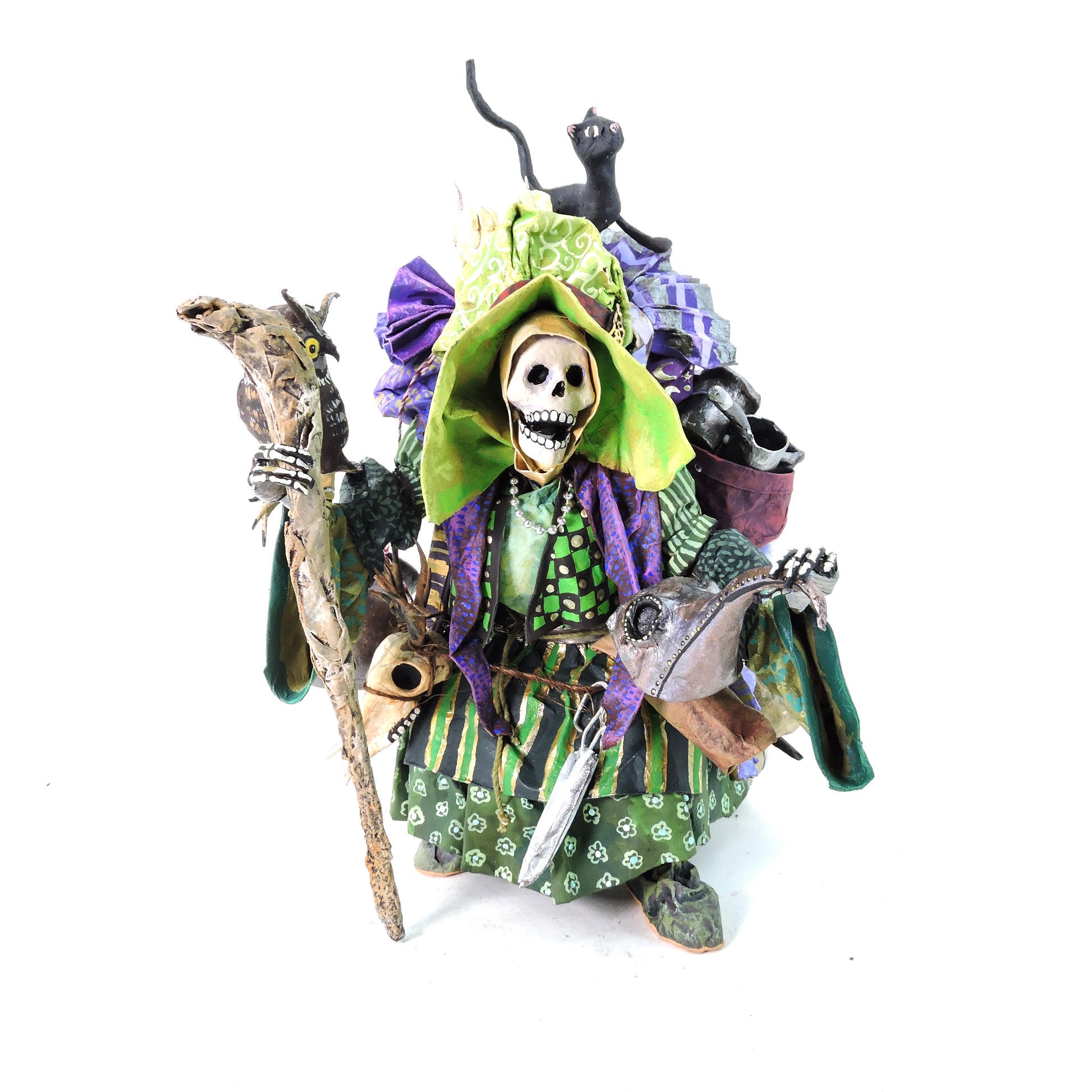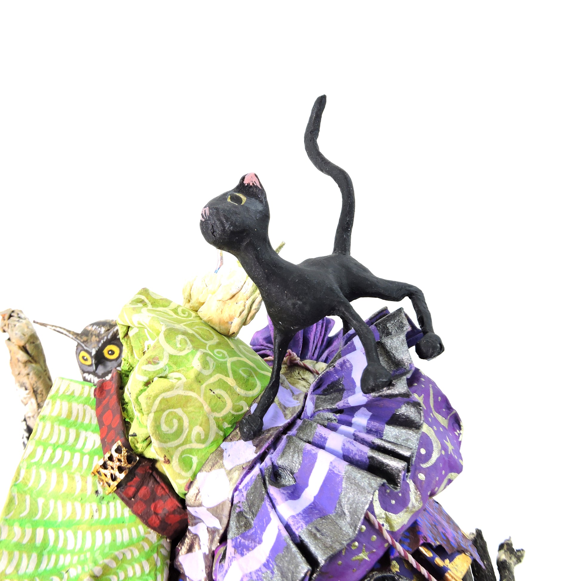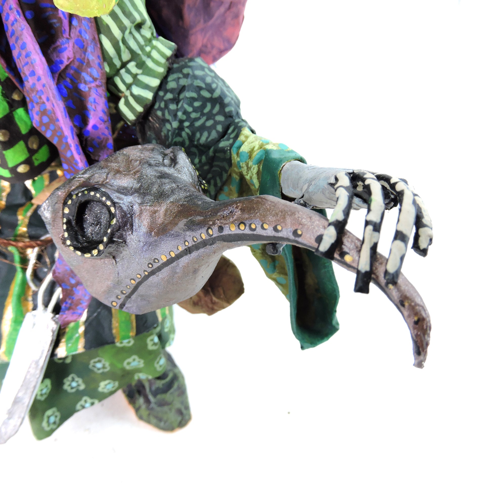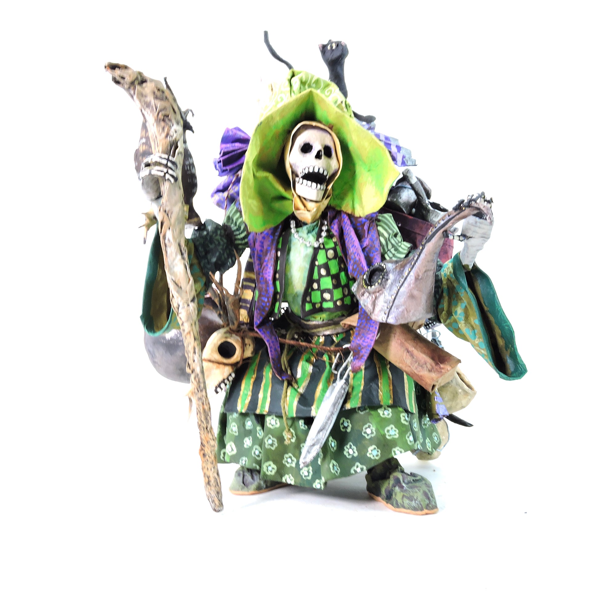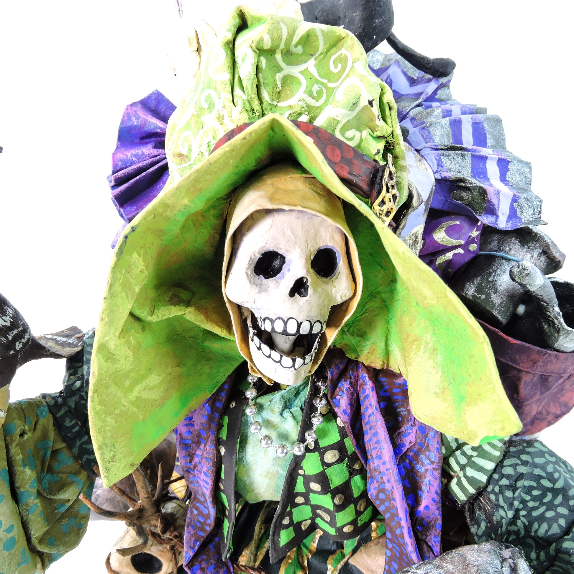 La técnica de cartonería utilizada para dar forma a estas esculturas añade una textura y profundidad excepcionales a cada pieza. La combinación de habilidad artesanal y creatividad desbordante se entrelaza en cada curva y línea, creando una experiencia visual que cautiva y emociona.