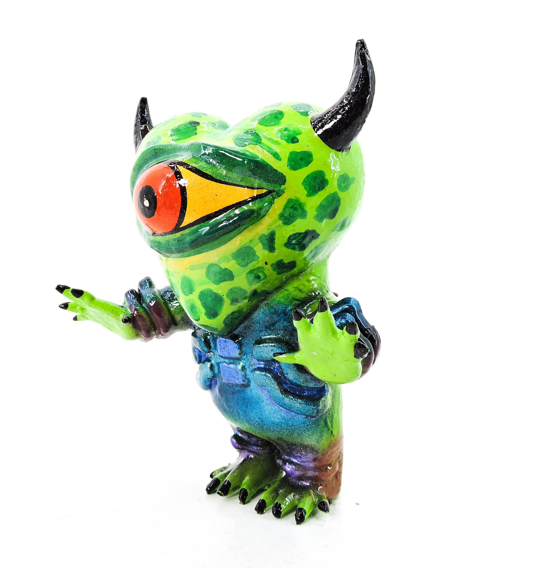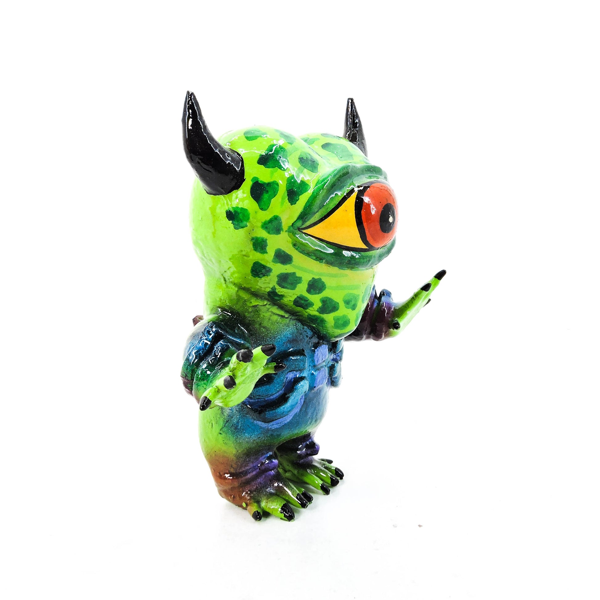 Nacido en las entrañas del taller Nahualcalli, Mal Augurio es una pieza única de arte contemporáneo con alma ritual. Esta figura fue completamente diseñada y elaborada a mano por los miembros del taller durante un proceso de cuatro meses, cuidando cada detalle desde el primer boceto hasta la última pincelada.