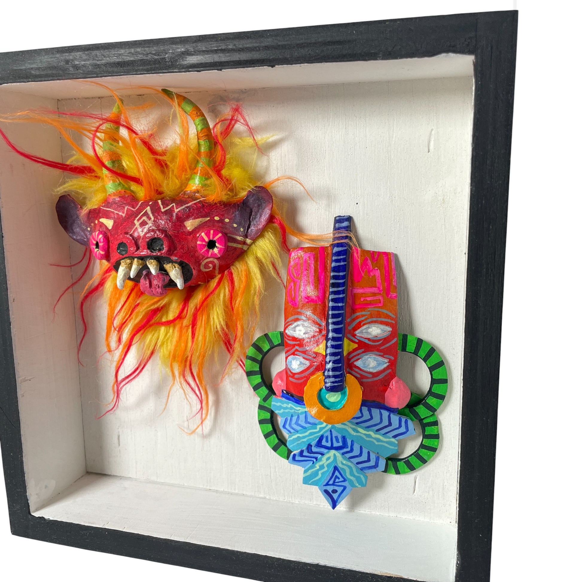 Descubre la serie ONIROMAQVINA II, donde cada máscara enmarcada representa a valientes guerreros de la imaginación. son piezas únicas que transforman el espacio con su aura surrealista y poderosa. Esta colección exclusiva invita a sumergirte en un mundo creativo sin límites, ideal para quienes buscan arte que inspire y despierte nuevas sensaciones. No dejes pasar la oportunidad de llevar a casa una obra que combina misterio, fuerza y originalidad.