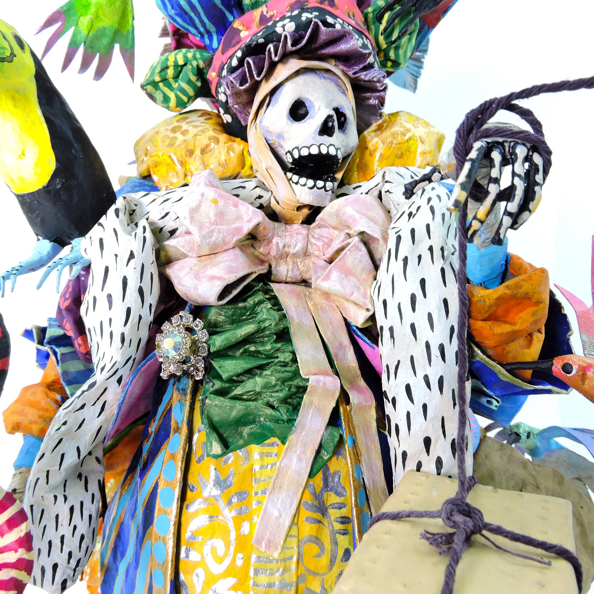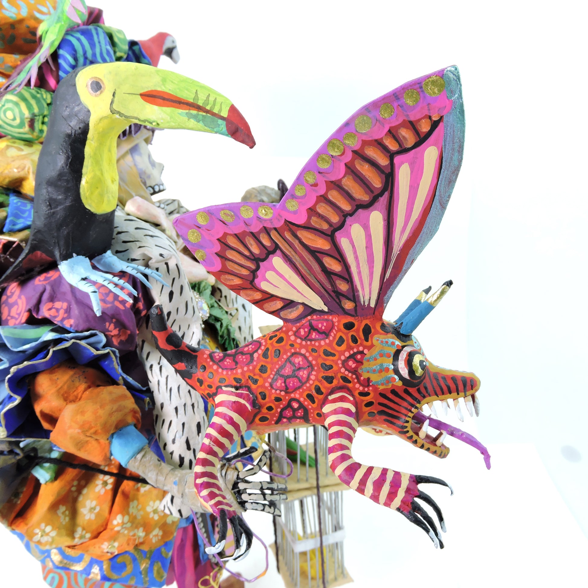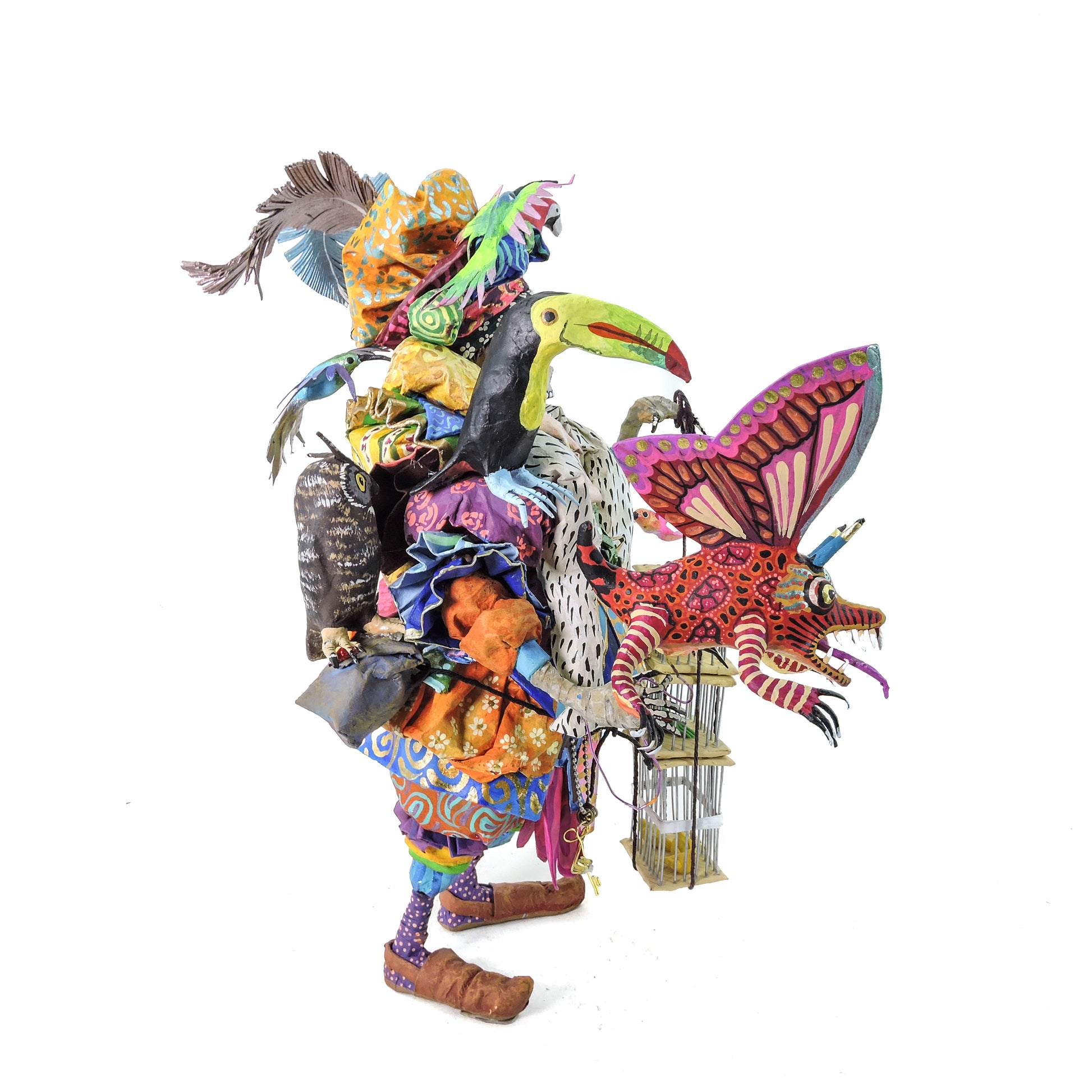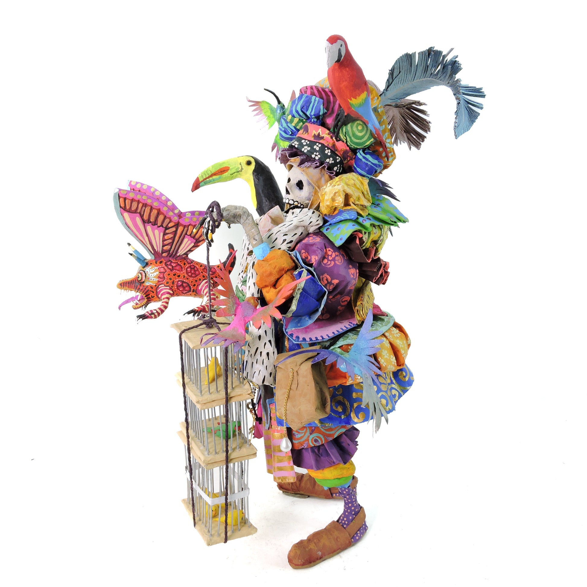 La técnica de cartonería utilizada para dar forma a estas esculturas añade una textura y profundidad excepcionales a cada pieza. La combinación de habilidad artesanal y creatividad desbordante se entrelaza en cada curva y línea, creando una experiencia visual que cautiva y emociona.