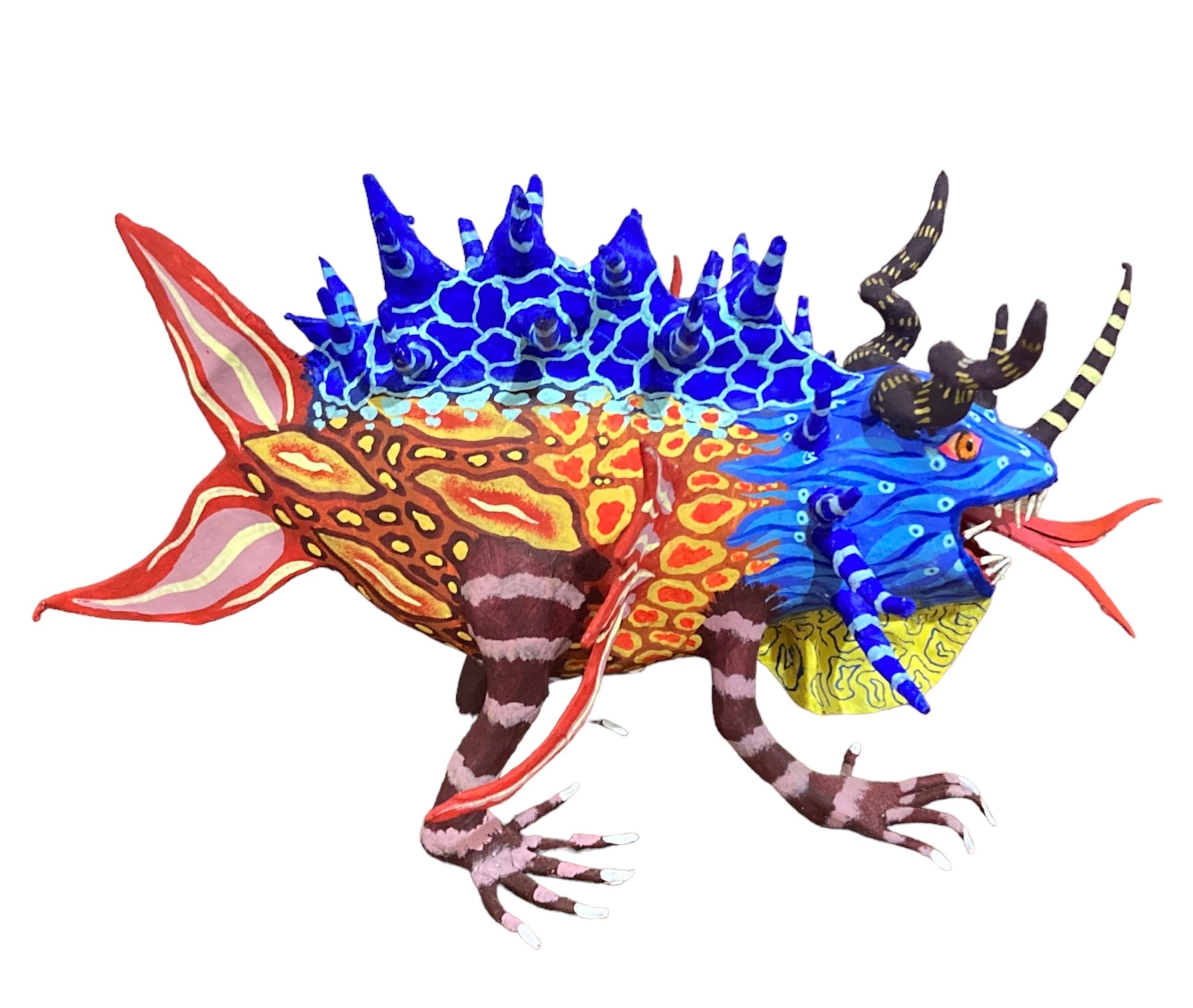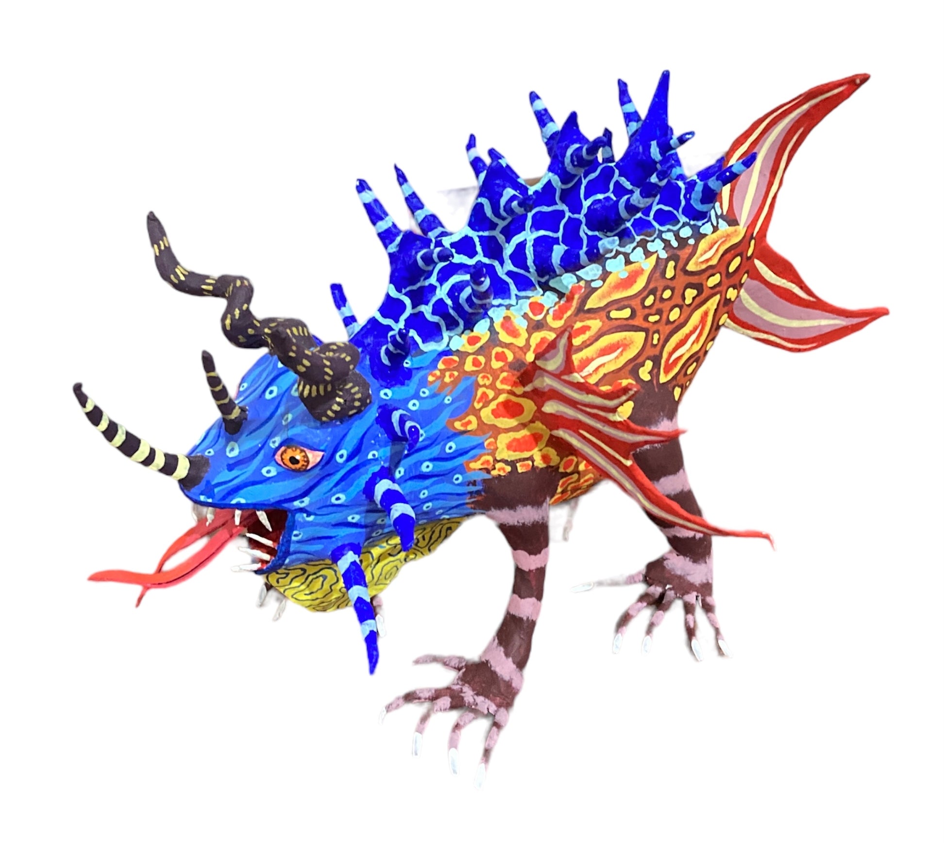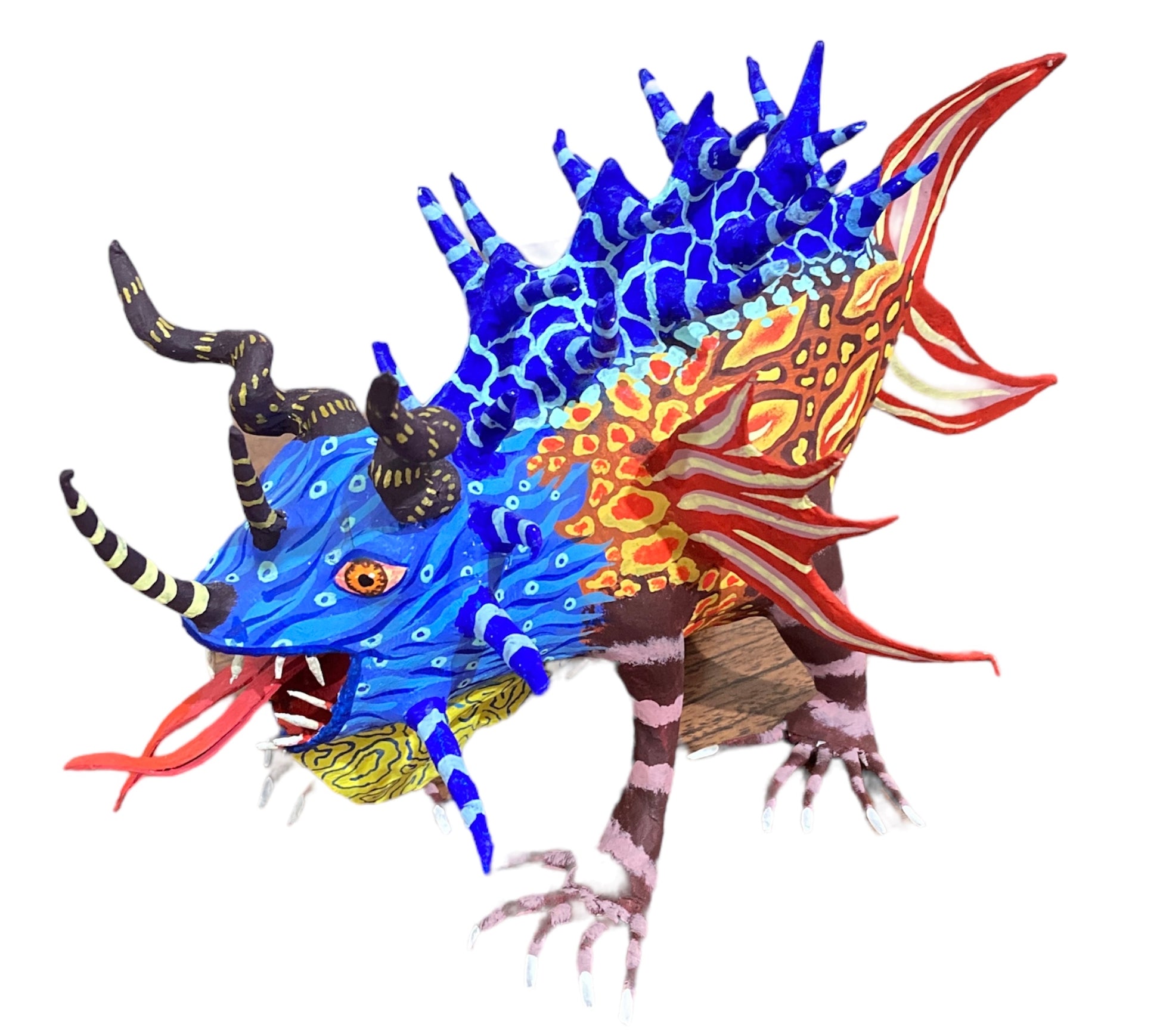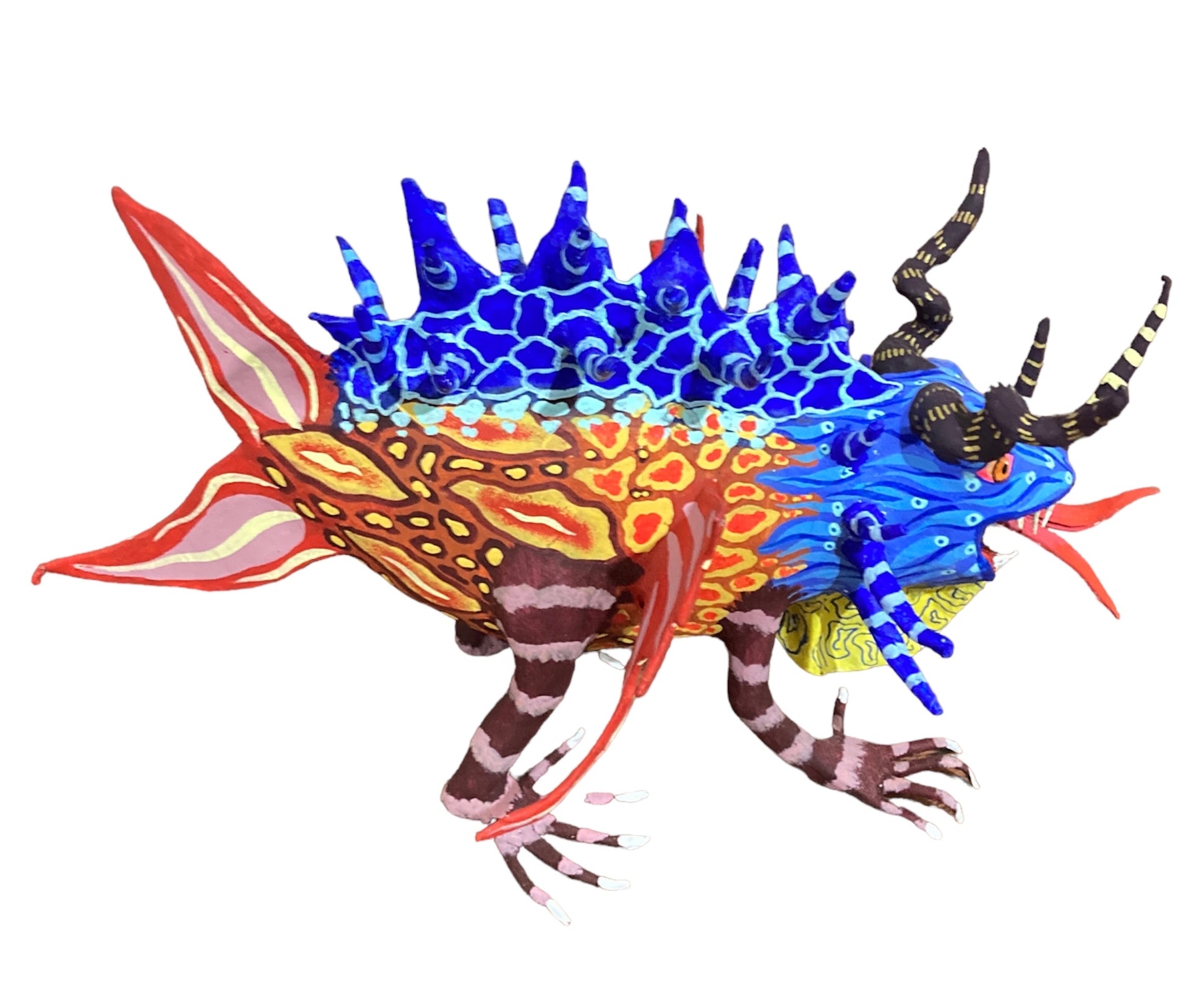 Cada una de las piezas de esta producción es única, queriamos demostrar que a pesar de haber trabajado con la misma base en cada modelo se podia conseguir un alebrije único y diferente con pintura especial en cada pieza.