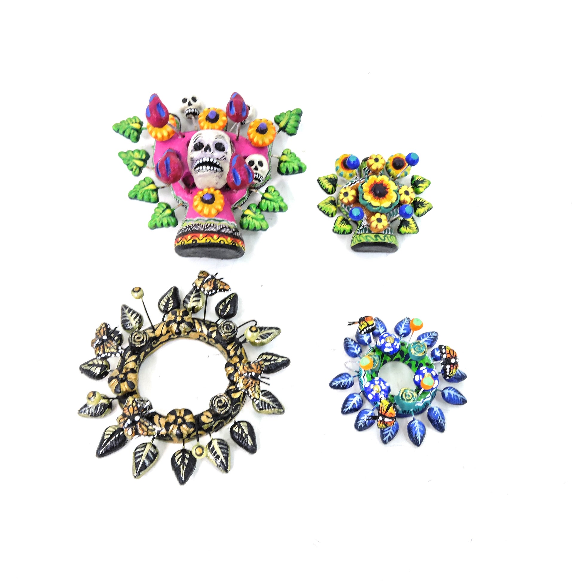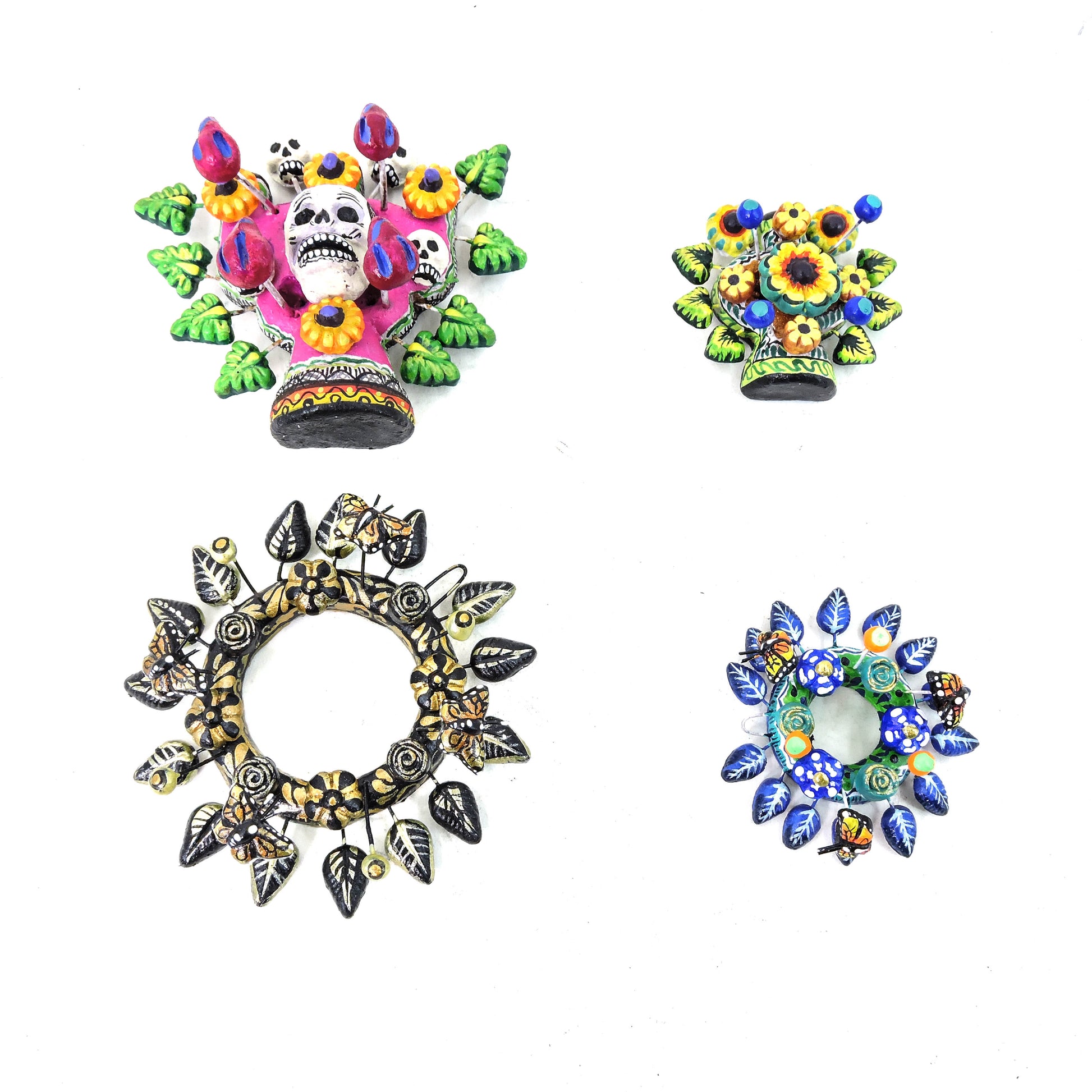 Hermosa artesanía, elaborada en el estado de Metepec, pintada por artesanos del estado de México, para elaborar este tipo de trabajo a mano se realizan los brazos, y varias piezas, algunas otras son elaboradas con molde en la técnica de pastillaje, la elaboración de este tipo de piezas lleva un proceso de 1 a 2 meses, la pintura se realiza a mano con pintura acrílica de alta calidad para evitar el deterioro de la pieza, un producto hermoso totalmente artesanal que resalta en cualquier espacio de tu hogar