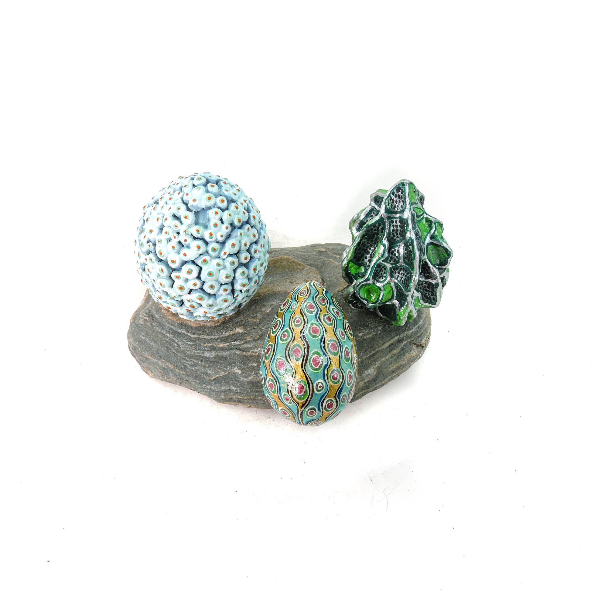 ¡NO INCLUYE LA BASE DE ROCA, pero no te preocupes! ¡Deja que tu imaginación vuele y coloca estos huevos en el lugar perfecto para eclosionar!