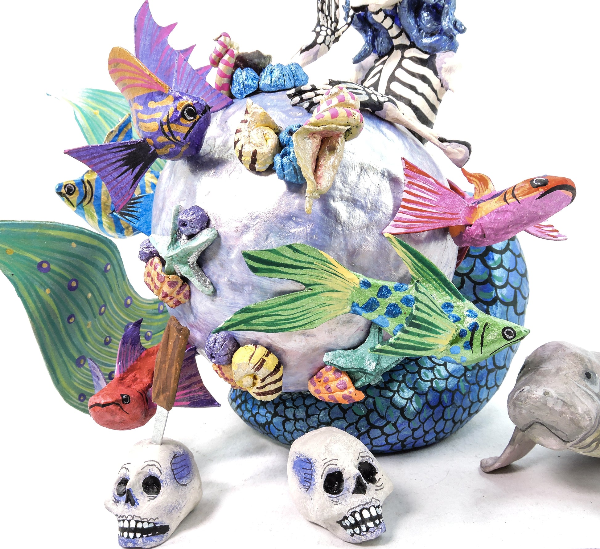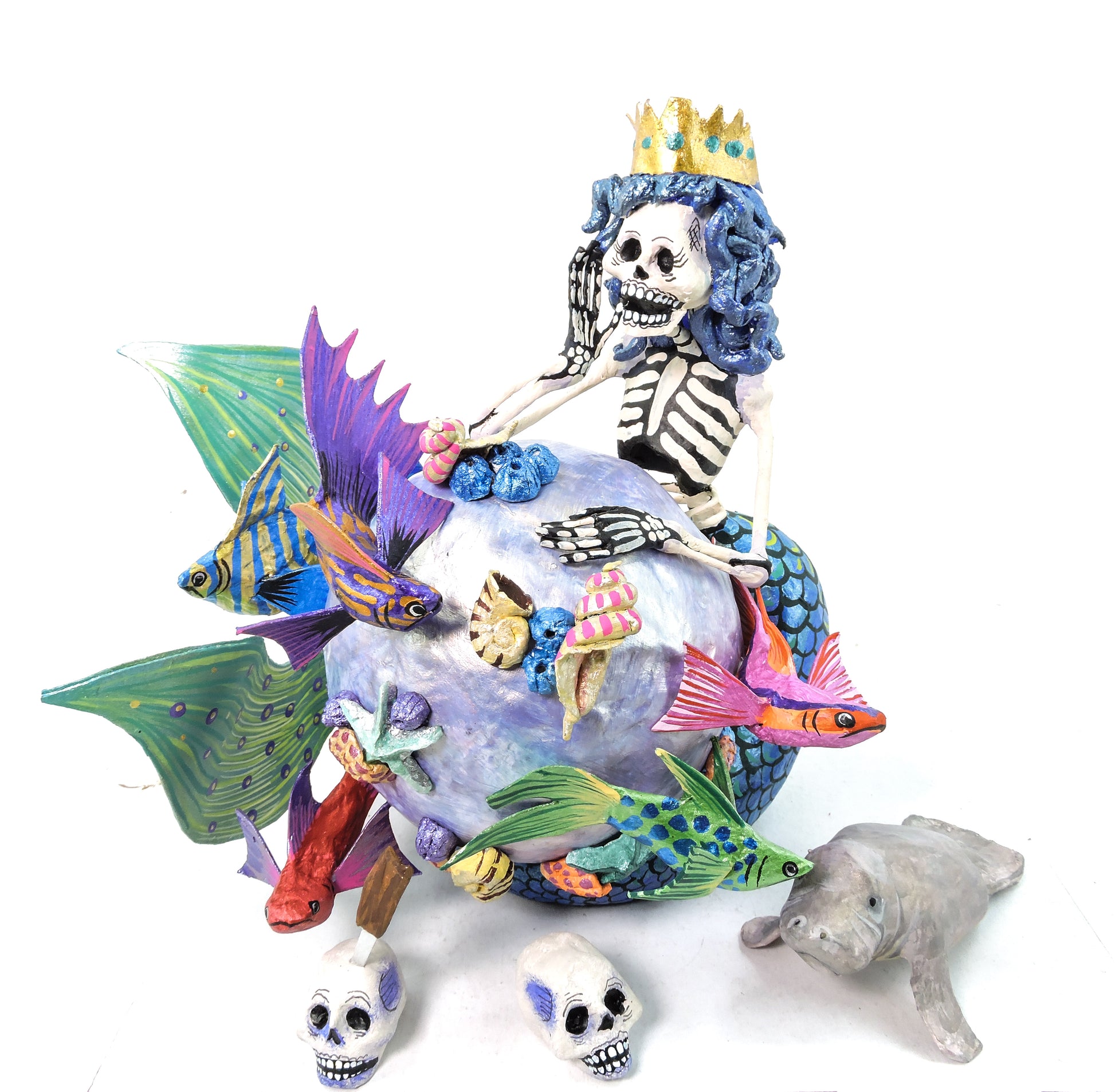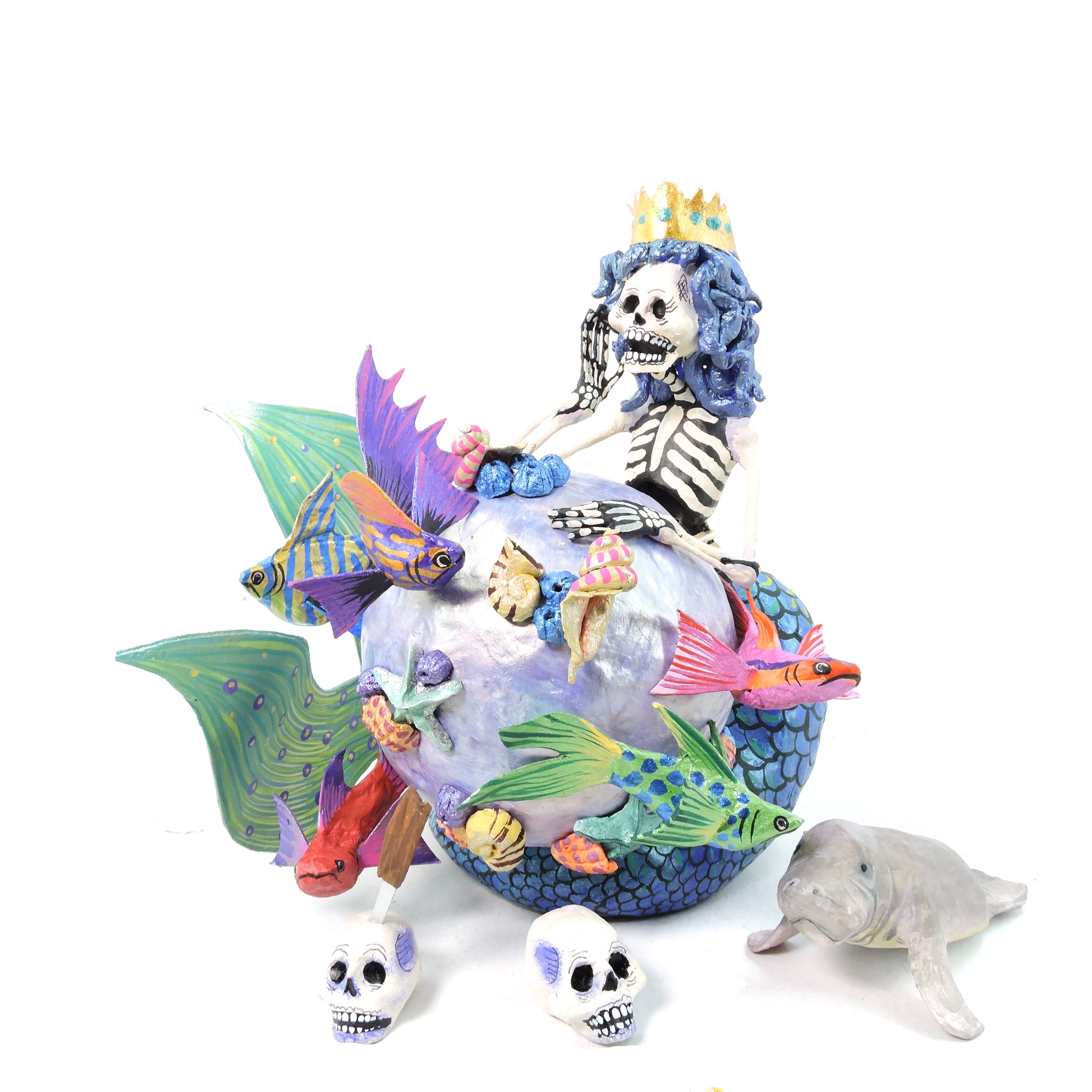Cada una de las piezas de esta colección de Día de muertos es única, moldeadas y decoradas a mano en nuestro taller.