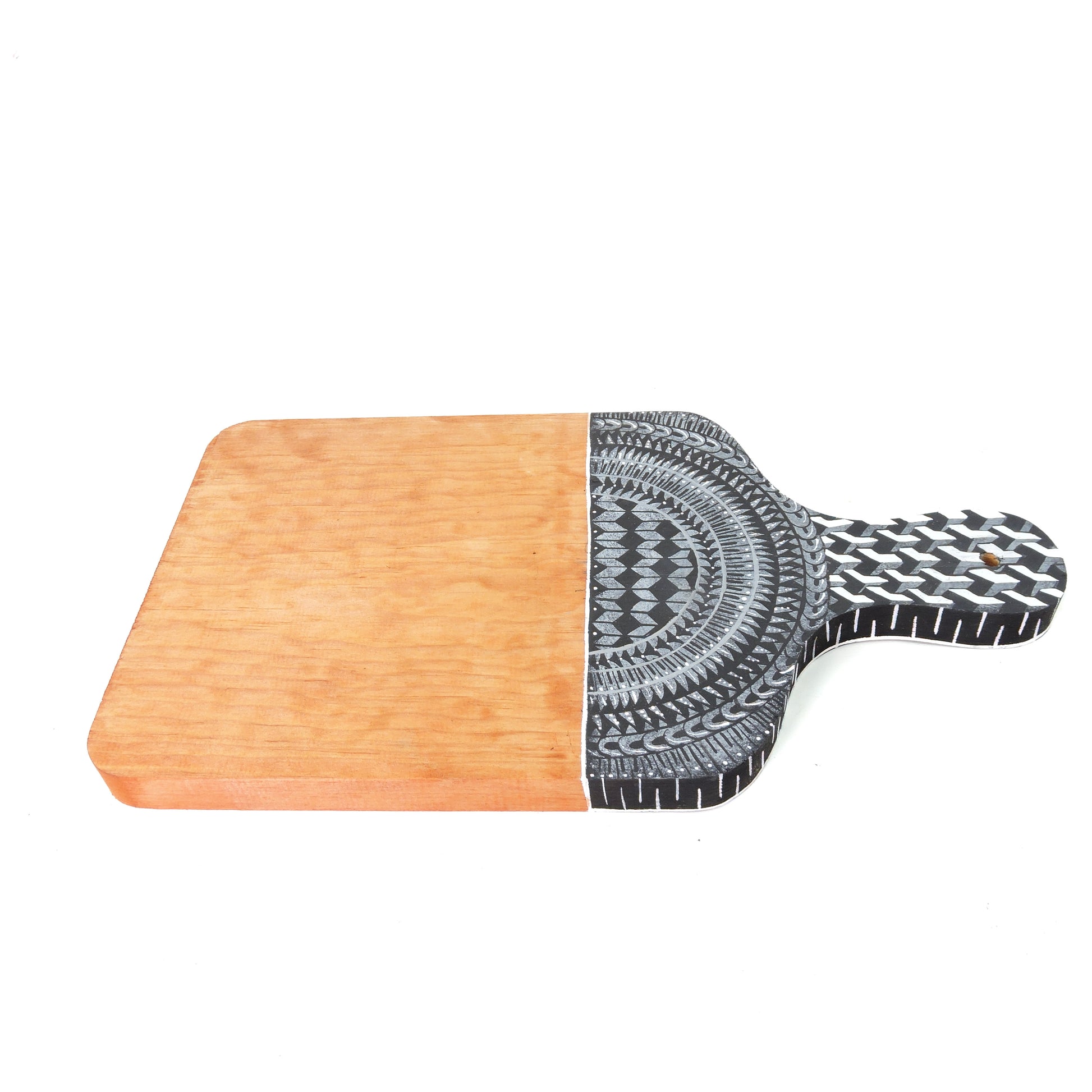 tabla perfecta para la botana o para usarse como una decoracion, un regalo ideal para los amantes del vino y lo mexicano, esta tabla cuenta con una recubierta de resina en la parte de la pintura para que pueda enjuagarse y lavarse, pero se recomienda no tallar con fibras abrasivas la parte de la pintura para evitar su desgaste, el set de cuchillos no esta incluido es solo una referencia de tamaño y uso